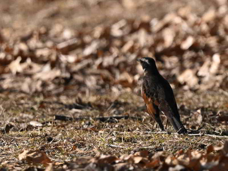 グランドをのぞいてみていると遠くにツグミが見えた。しばらく眺めていると